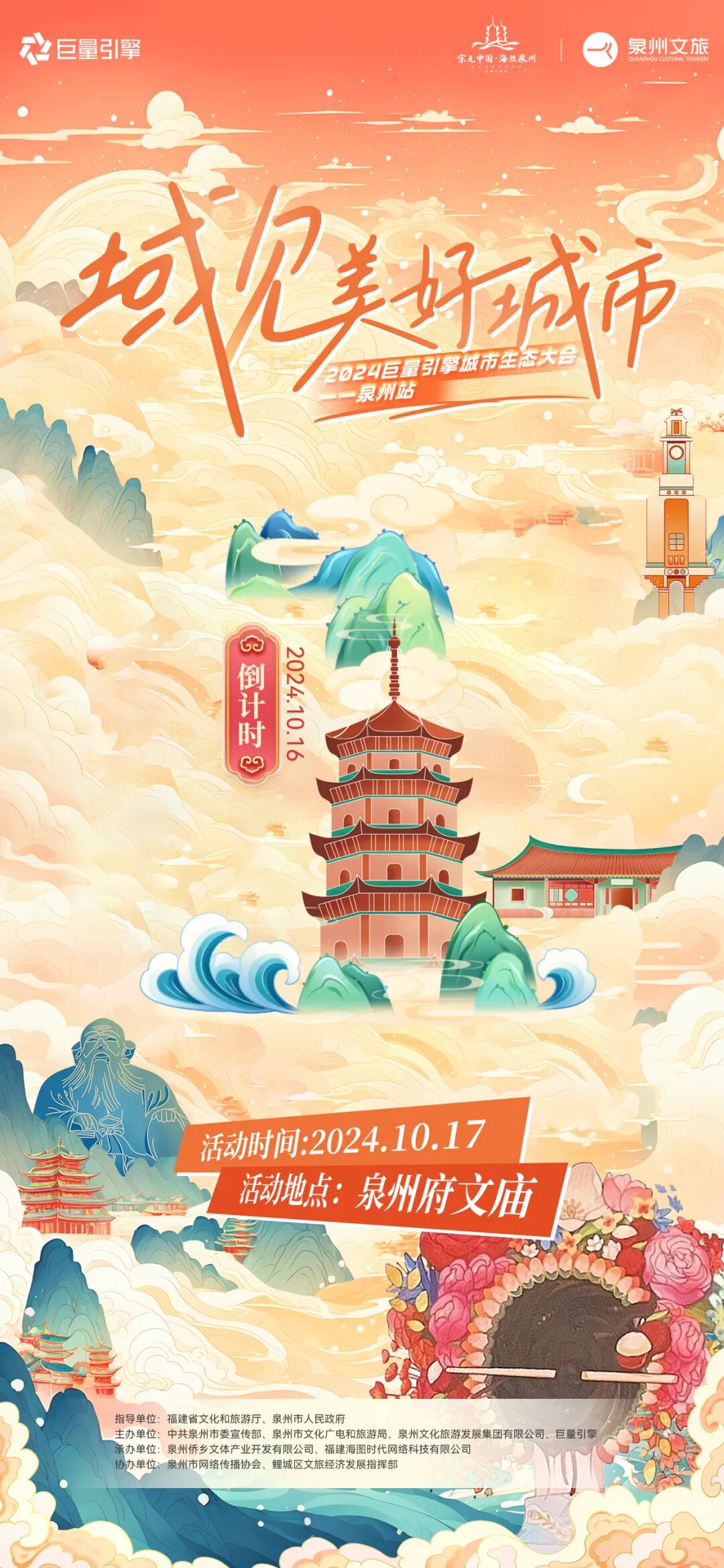 10月17日,由福建省文化和旅游厅、泉州市人民政府指导,中共泉州市委宣传部、泉州市文化广电和旅游局、泉州文化旅游发展集团有限公司和巨量引擎主办,泉州侨乡文体产业开发有限公司、福建海图时代网络科技有限公司承办的“2024域见美好城市-巨量引擎城市生态大会”即将落地泉州,于府文庙举办。