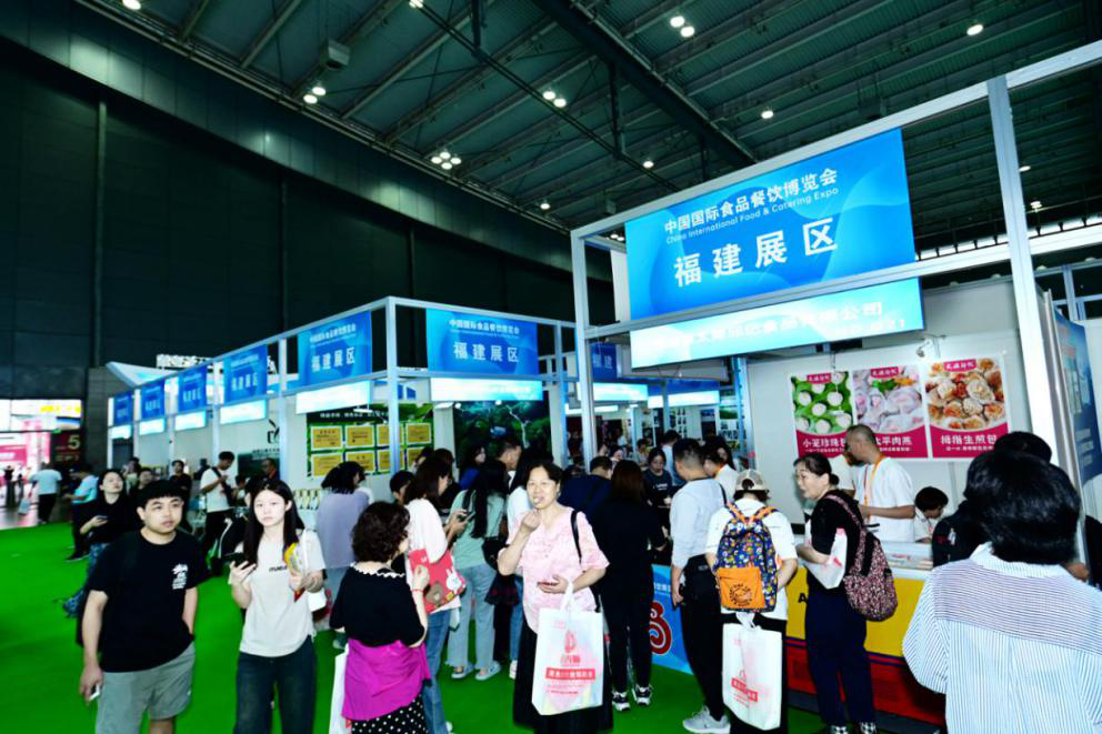 福建展区共设50个标准展位,面积近700平方米,整体以蓝白为主色调简特装布展。展会期间,展区内香气扑鼻、人潮涌动,吸引了众多客商驻足参观、试吃品尝、沟通洽谈,有的在展区里边看边“尝”、有的在展位前直接“撸”串、有的干脆直接带货回家,现场烟火气十足、文化味满满,以“舌尖上的美食”生动诠释“福”文化的丰富内涵和独特价值。同时,通过本次展销活动,参展企业也进一步扩大了“朋友圈”,开拓了境内外市场,助力推动“福品卖全球、全球买闽货”。展会期间,福建展团共接待采购商、供应商和代理商等专业观众2万多人次,参展效果远超预期。