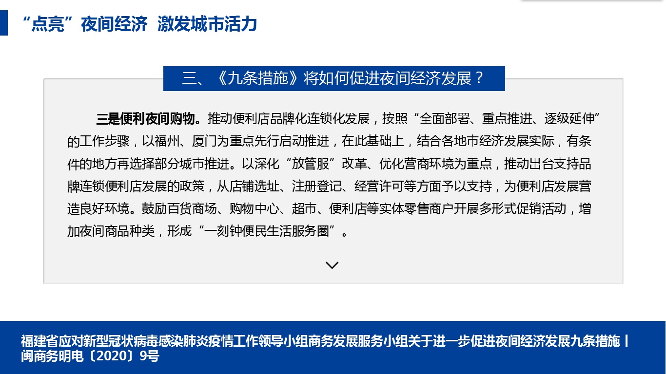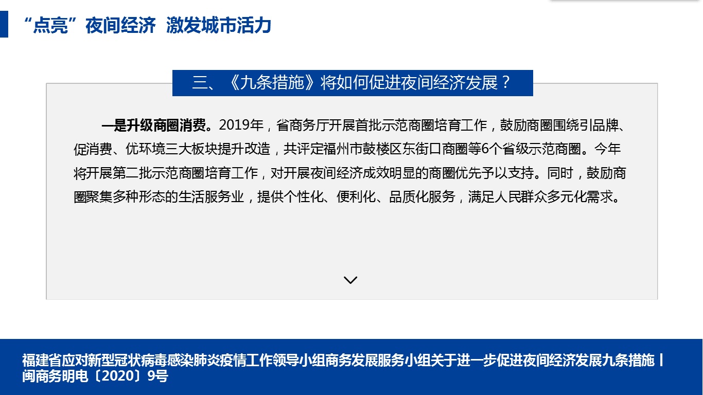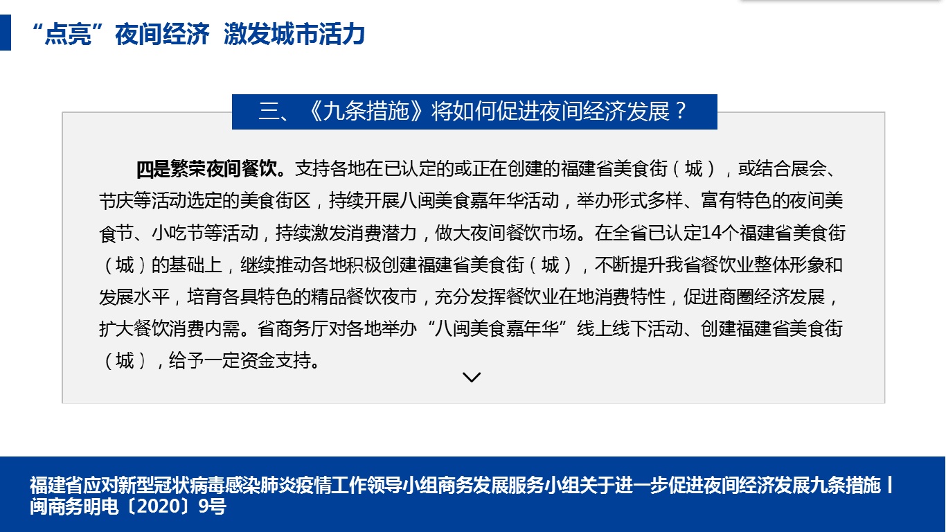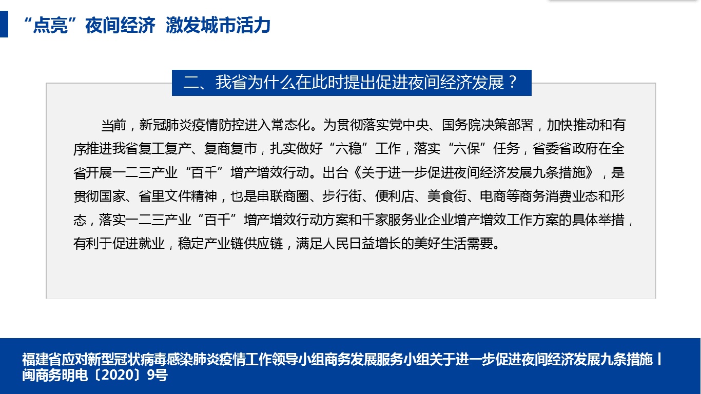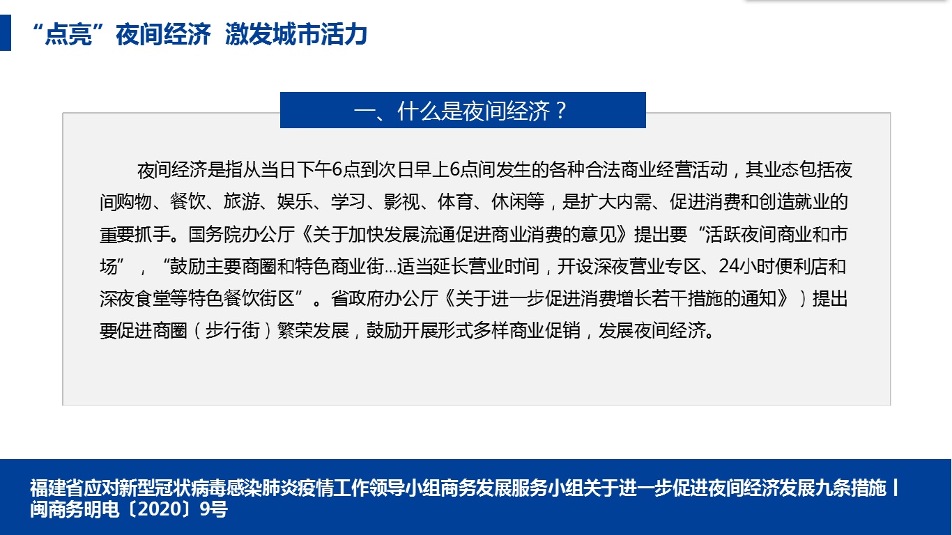 福建省应对新型冠状病毒感染肺炎疫情工作领导小组商务发展服务小组关于印发进一步促进夜间经济发展九条措施的通知
