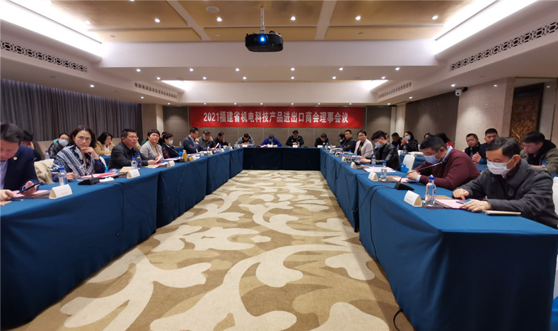 2021年12月3日上午,福建省机电科技产品进出口商会(以下简称“商会”)理事会议在福州西湖大酒店3楼琼林厅顺利召开。商会会长洪文洁出席会议,来自福建各地的理事单位代表近40人参加会议,联合国工业发展组织福建项目办总协调员贺汪洋、商会高级咨询专家黄晓东列席会议,会议由秘书长曾晓丽主持。