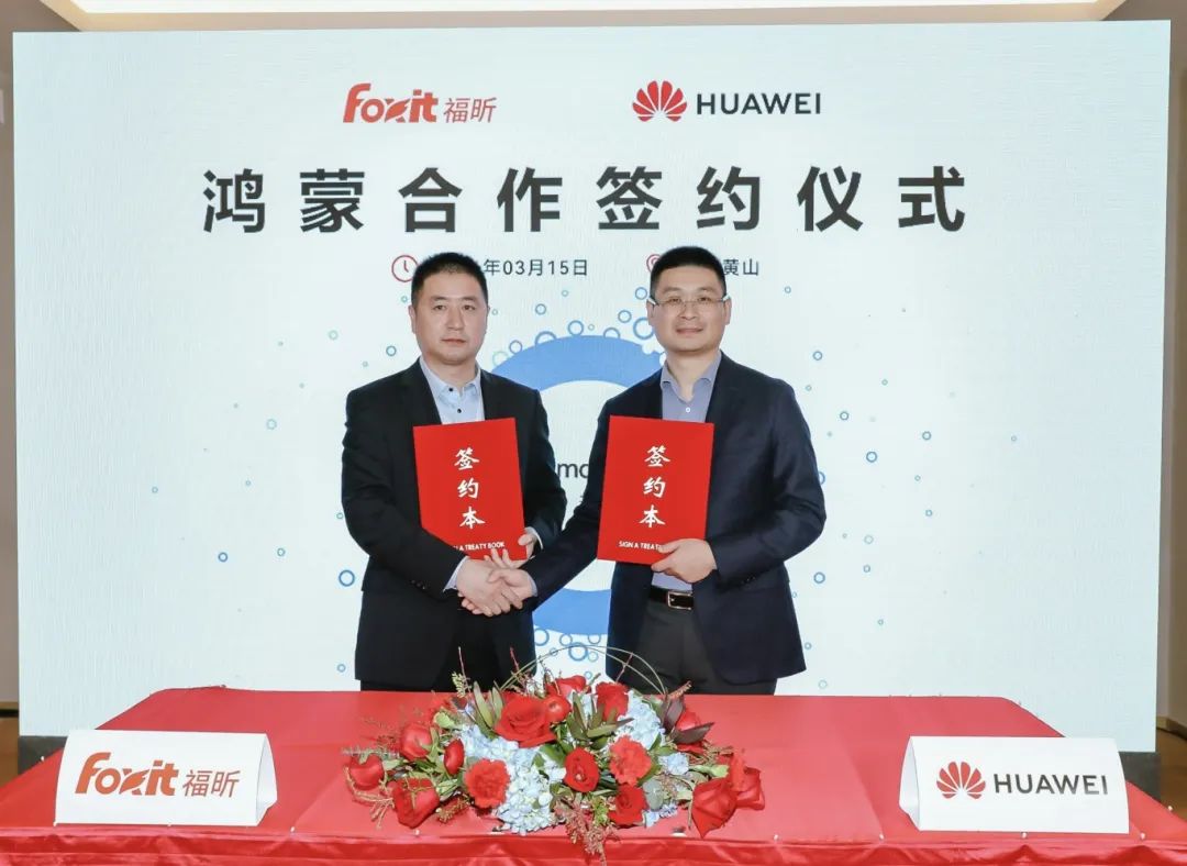 3月15日,在华为云&华为终端云服务创新峰会上,福昕软件与华为集团签署鸿蒙生态合作协议,宣布将基于HarmonyOS NEXT鸿蒙星河版启动鸿蒙原生应用开发,在鸿蒙生态里为用户提供更全面、更安全、更智能化的数字办公服务,引领版式文档领域新潮流。