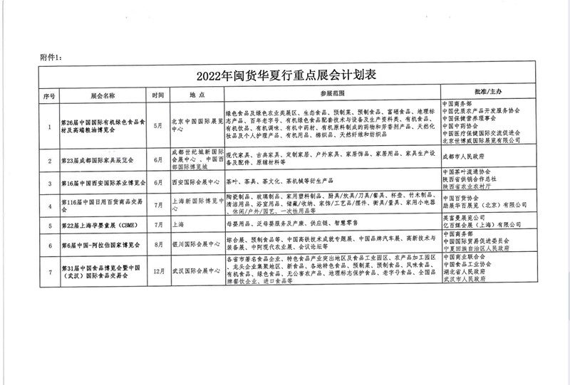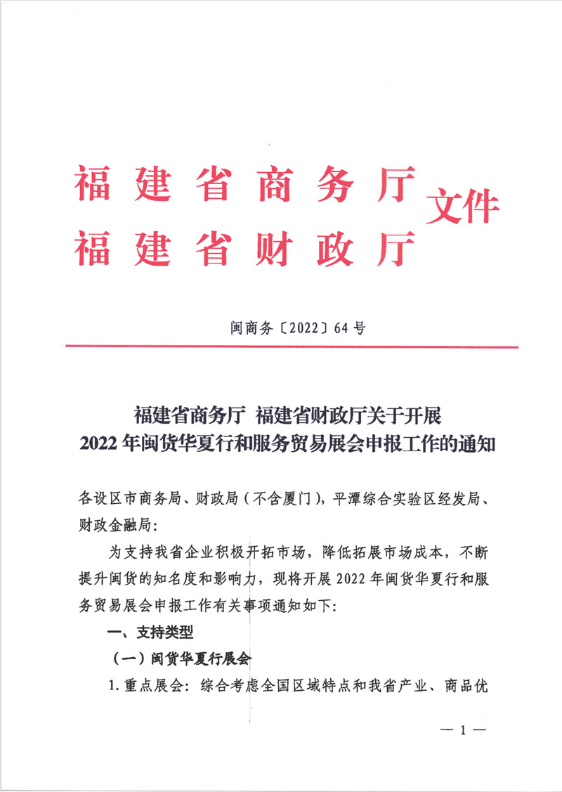 关于2022年闽货华夏行和服务贸易展会申报通知