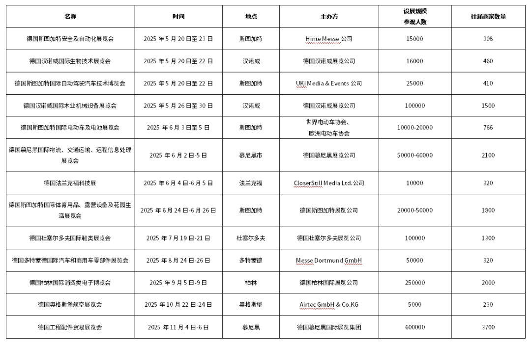 表1 2025年德国拟举办的展会