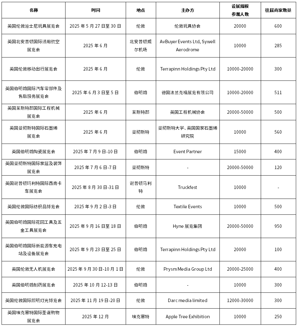表2 近期英国拟举办的展会