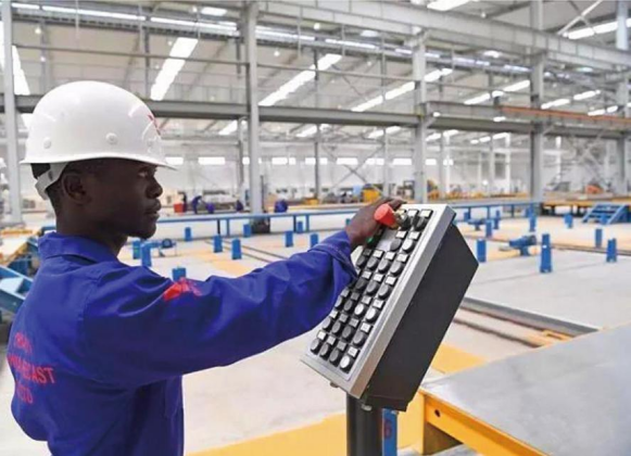 当地员工在中国武夷肯尼亚建筑工业化研发生产基地生产线上