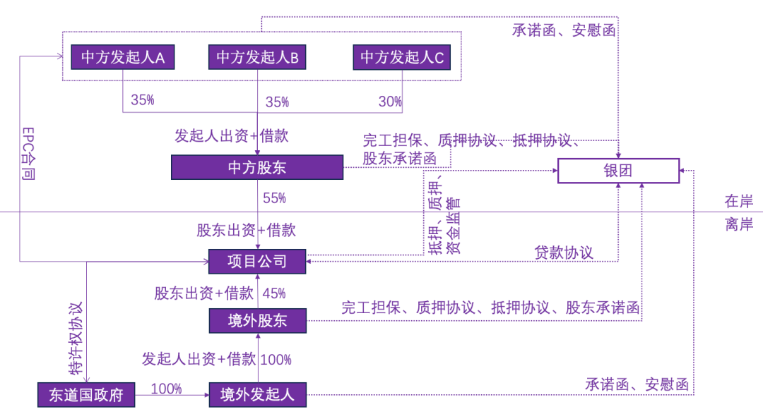 本项目中,中方企业同时作为中国投资方和EPC总包商,为境外项目进行投资、建设和运营。中方投资中,既包含中国企业股权出资,也包含境内银行融资,并由发起人、股东及项目公司共同为本项目提供符合境内银团融资条件的担保。