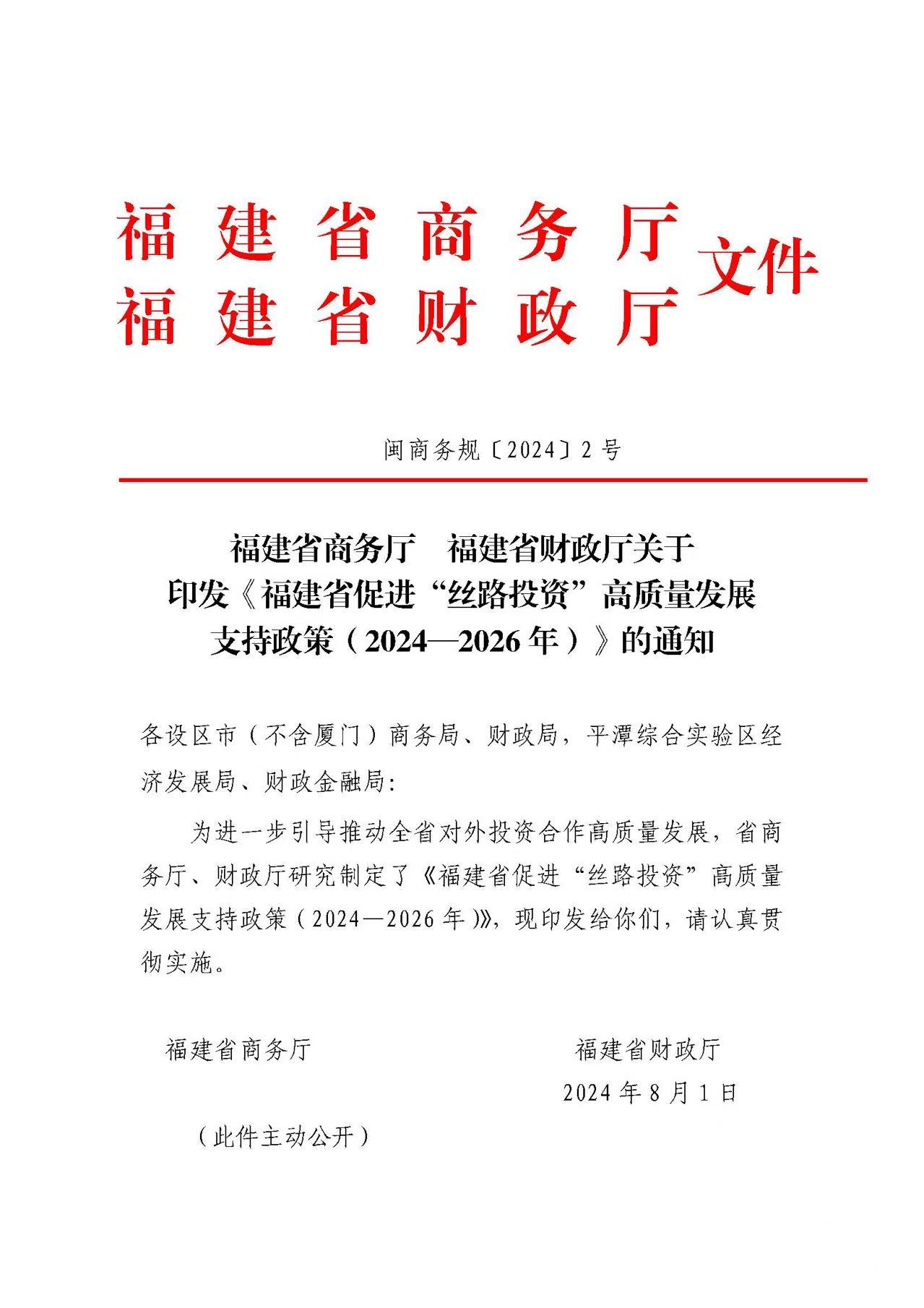 福建省促进“丝路投资”高质量发展支持政策(2024—2026年)