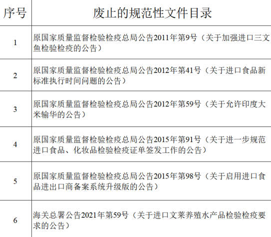 根据工作需要,海关总署决定废止部分进口食品类规范性文件,具体文件目录见附件。本公告自发布之日起生效。