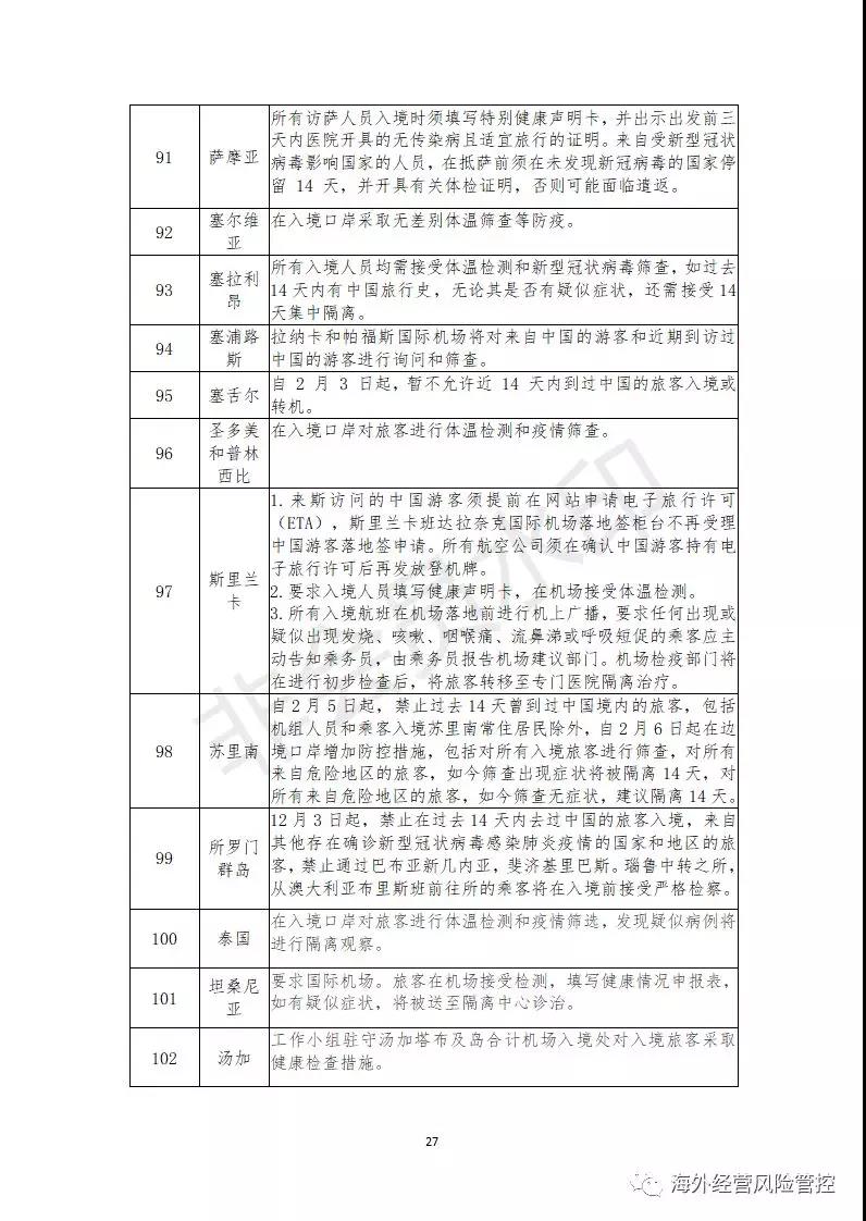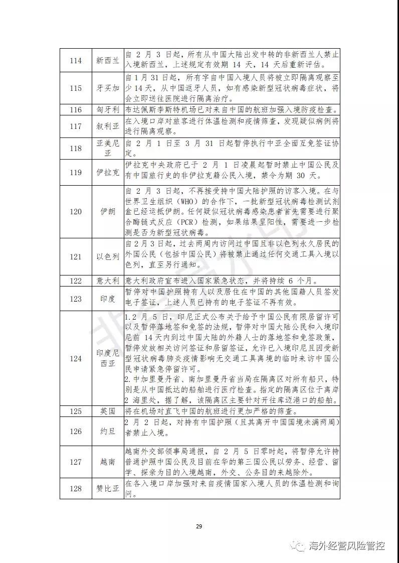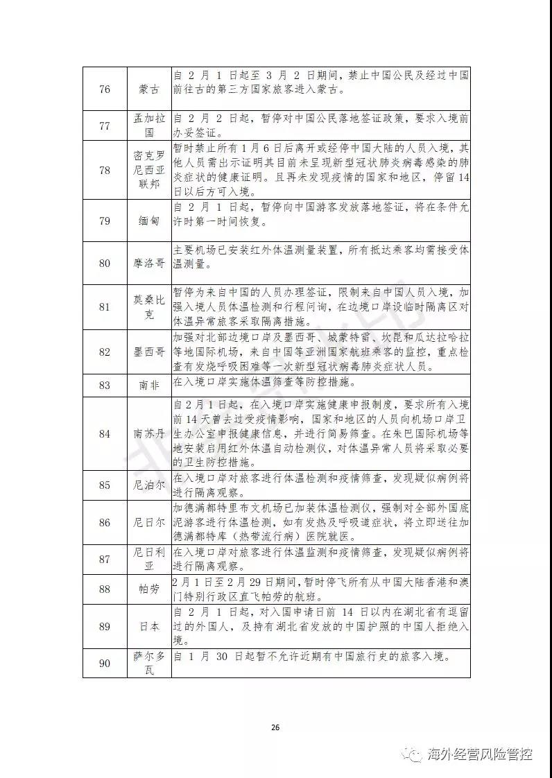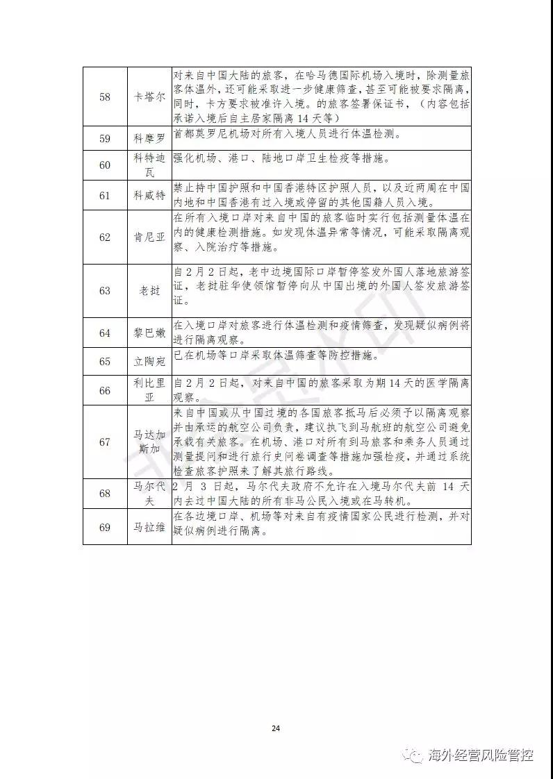截至2月12日,已有131个国家和地区对中国籍人员采取了不同程度的入境管制措施,这些管制措施可能导致部分境外项目人员无法顺利通关入境,给企业的海外投资活动带来一定程度的劳务风险,具体包括以下几方面。