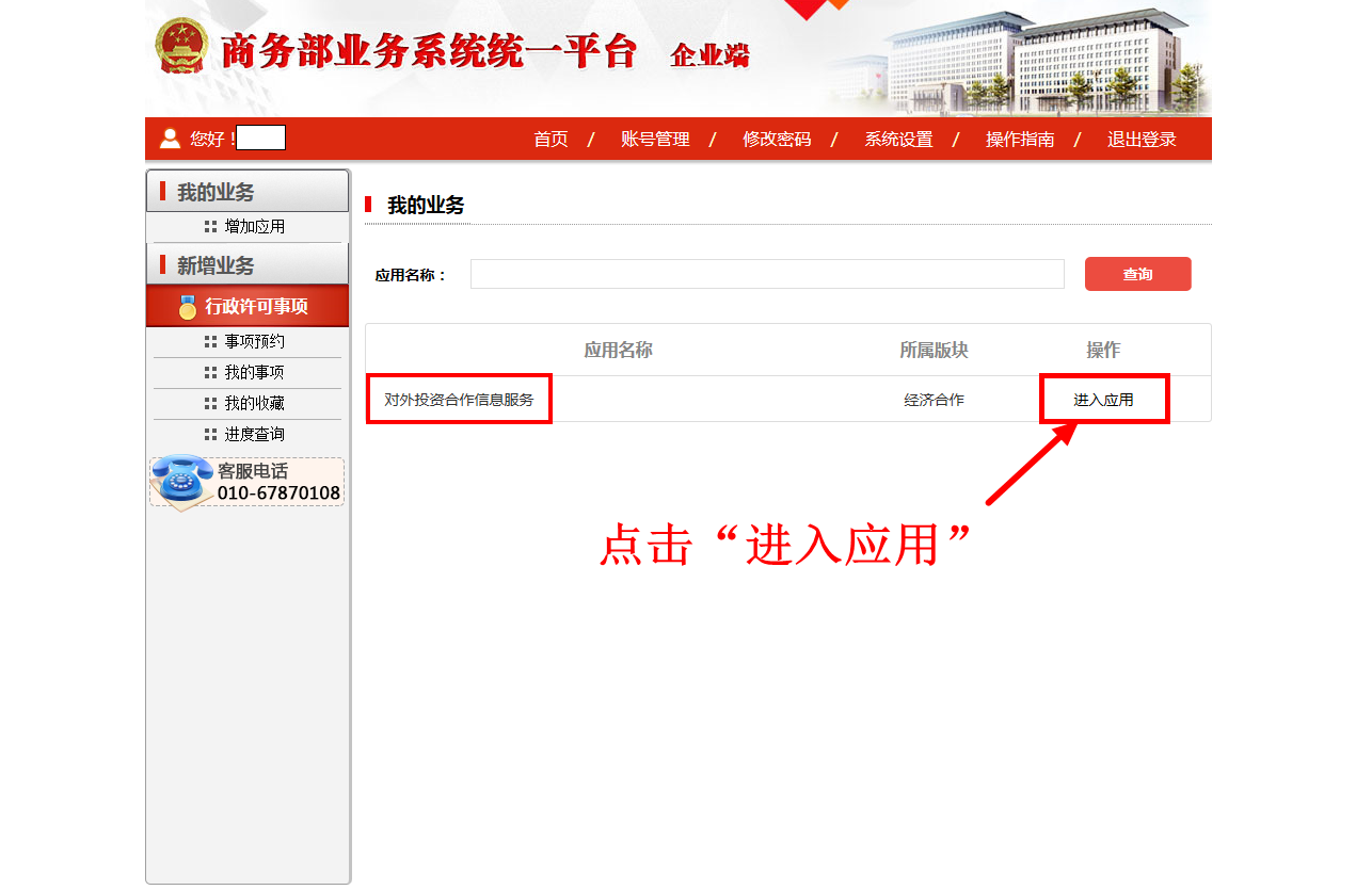 1.登录商务部业务系统统一平台