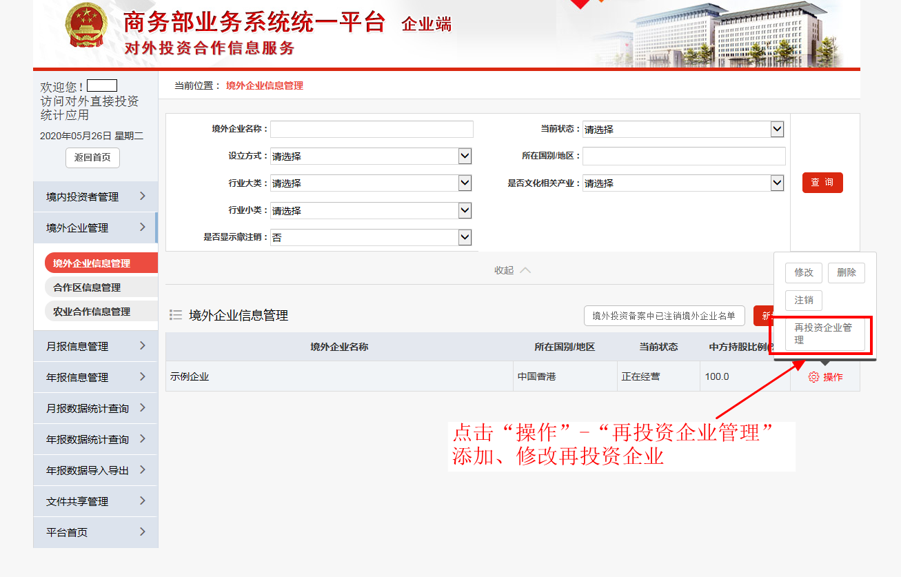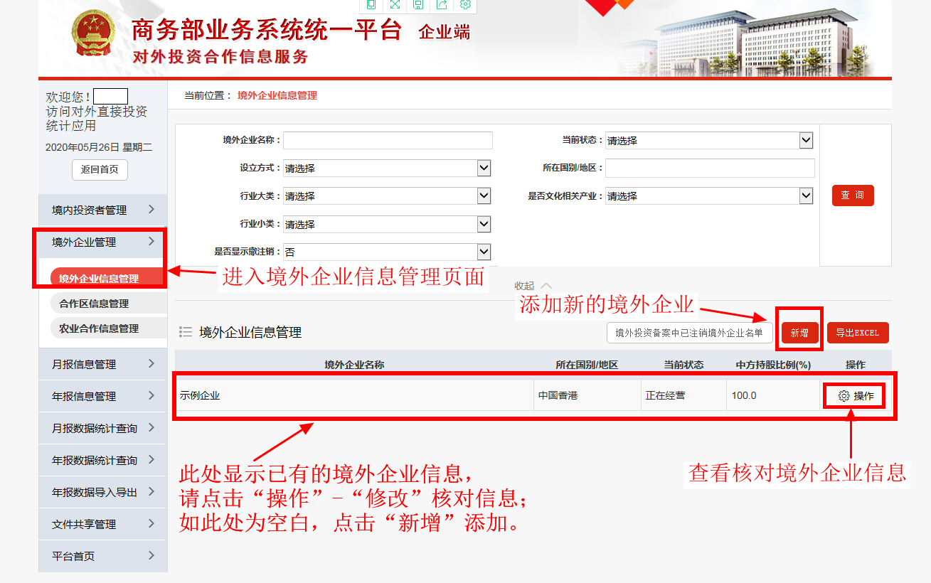 (1)进入“境外企业信息管理”页面