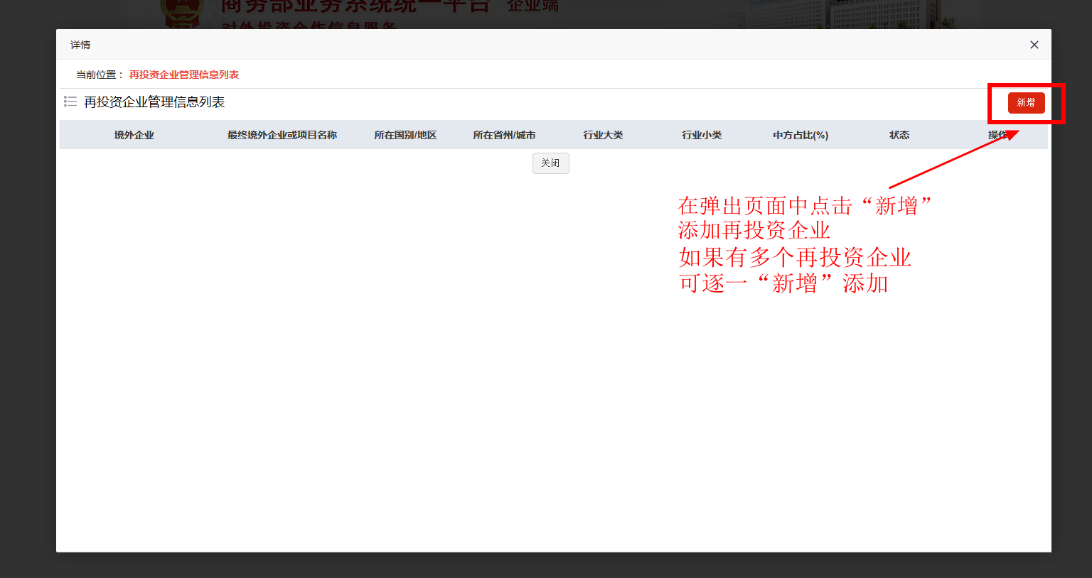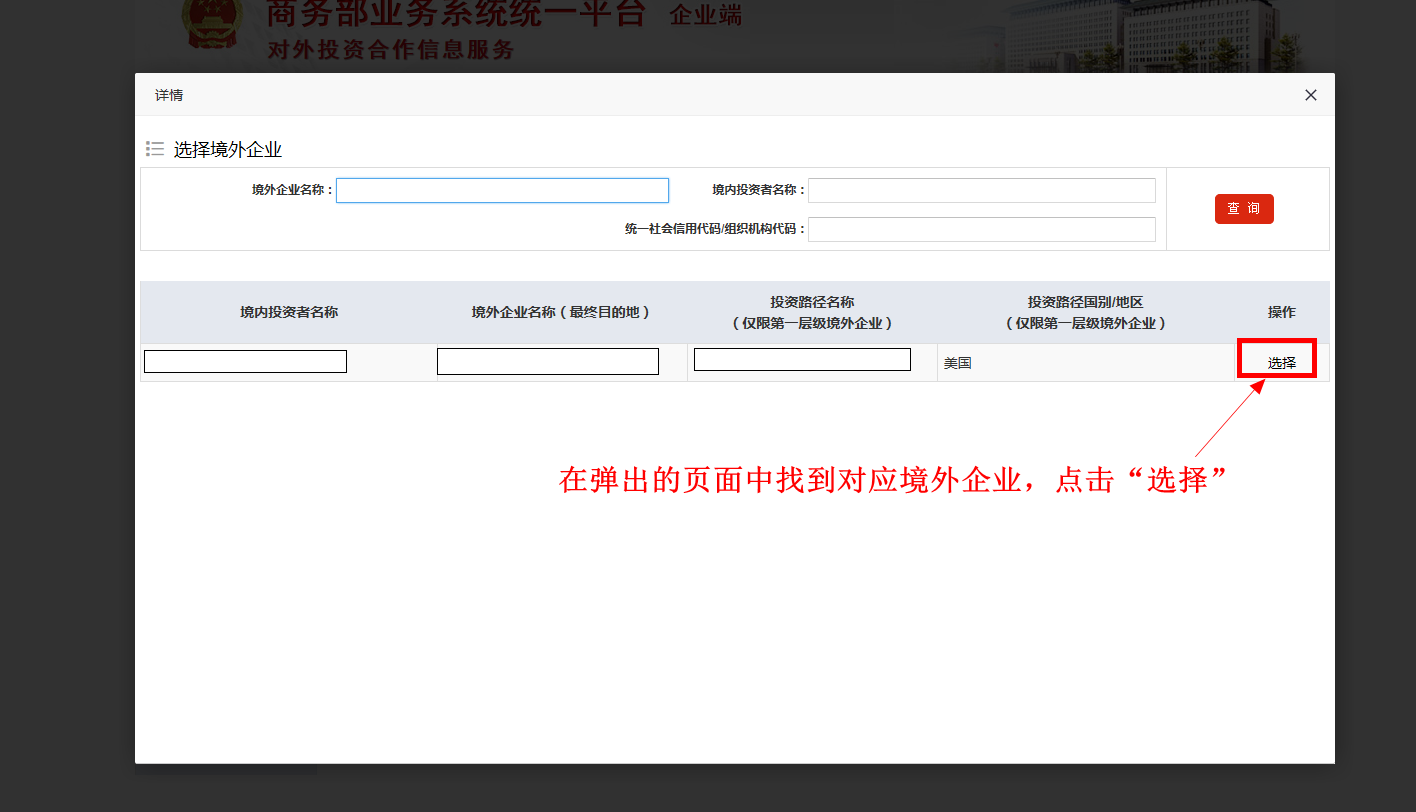 列表中完全没有或缺少某个境外企业信息,请点击“新增”添加。如果拟“新增”的境外企业不属于多层投资路径情形,可点击“从备案表中选择”导入该境外企业备案信息。