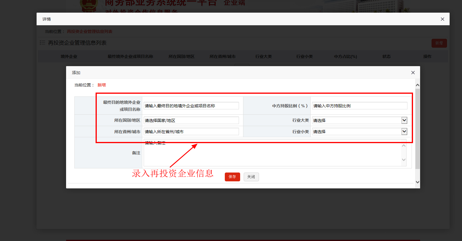 境外企业添加完成后,继续添加该企业的“再投资企业”,即最终目的地企业。