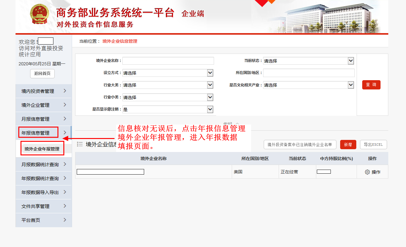 1.进入“境外企业年报管理”页面