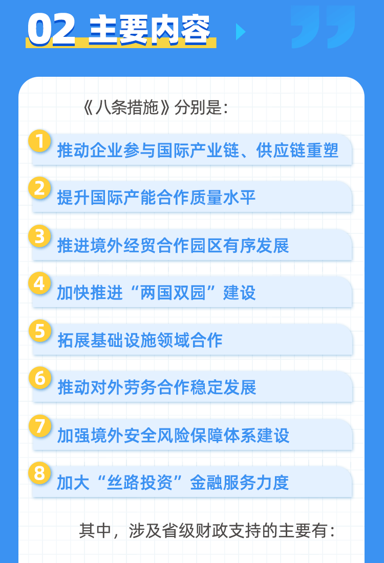一图读懂《推进“丝路投资”高质量发展八条措施》