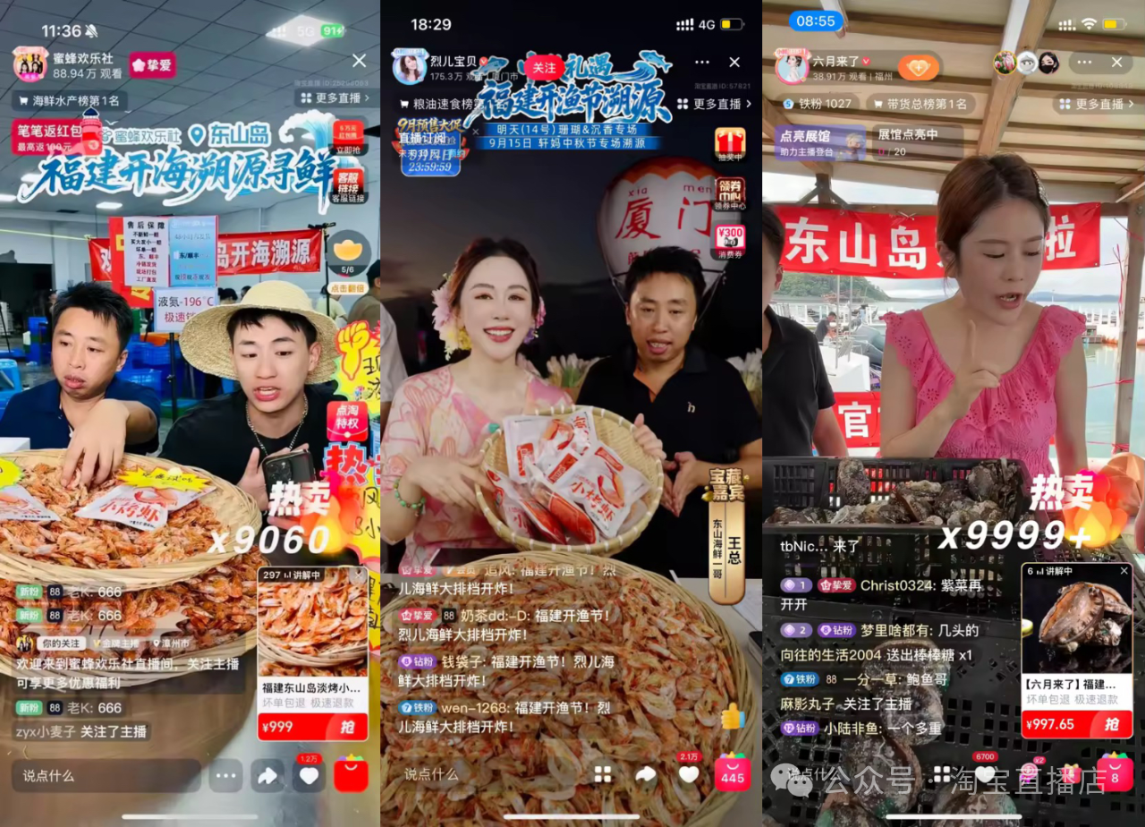 2025年8月「TAO产地溯源计划-开渔节」落地福建,淘宝直播店联合福建省政府打造“福建淘宝直播开海节”。从宁德大黄鱼的银鳞跃动,到福州滋补的深海馈赠,福建的山海物产通过“开海第一捞”的鲜活场景直连全国消费者。