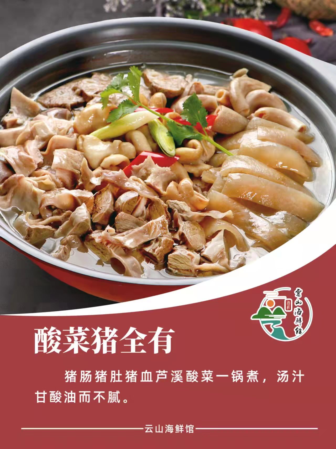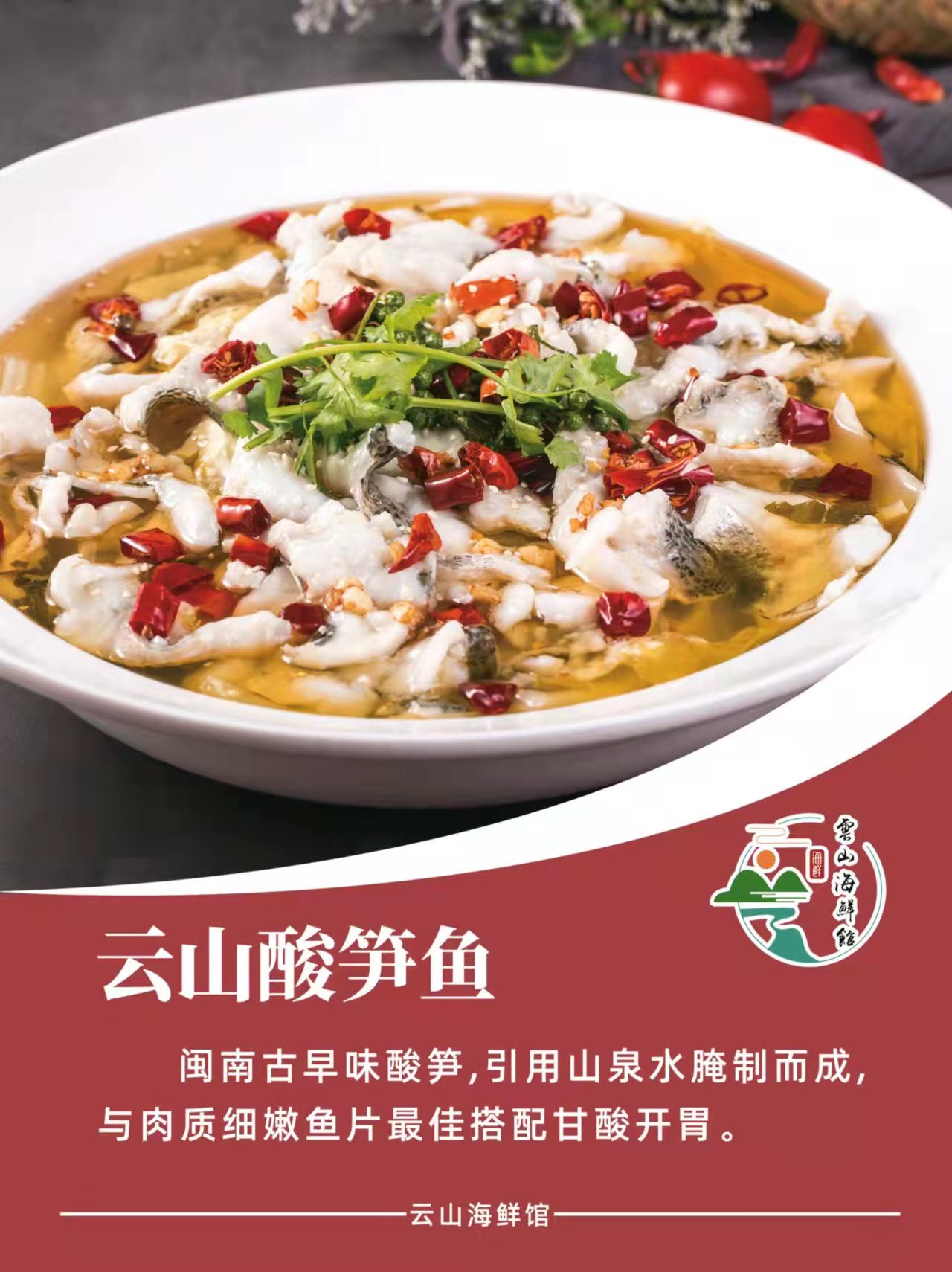 简介:云山海鲜馆位于龙文区建元东路。始终秉承,“挖掘山海食材”,传承乡村美味,云山酸笋鱼,秘制蒜香肉,酸菜猪全有,等闽南名菜给宾客尽享闽南特色。