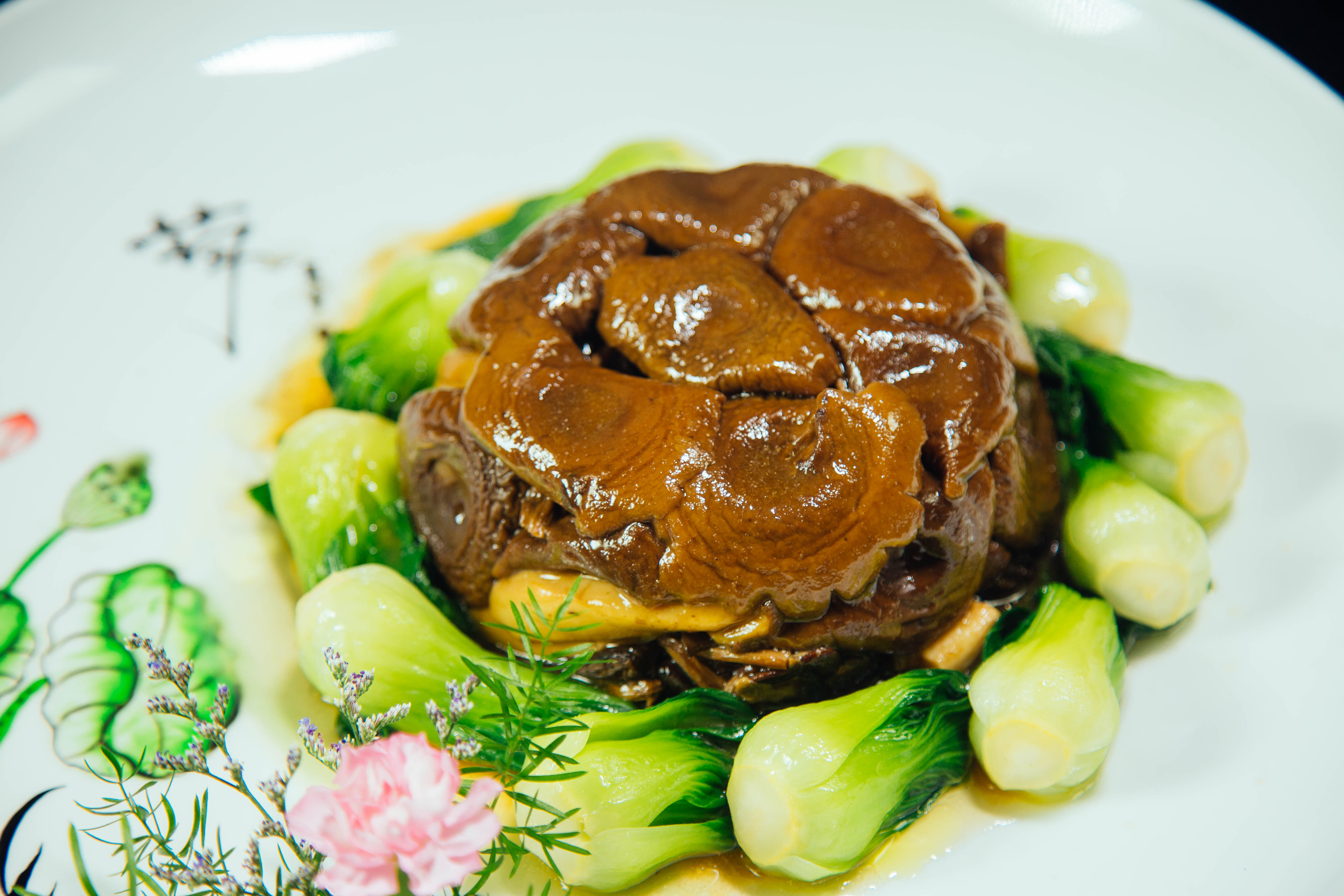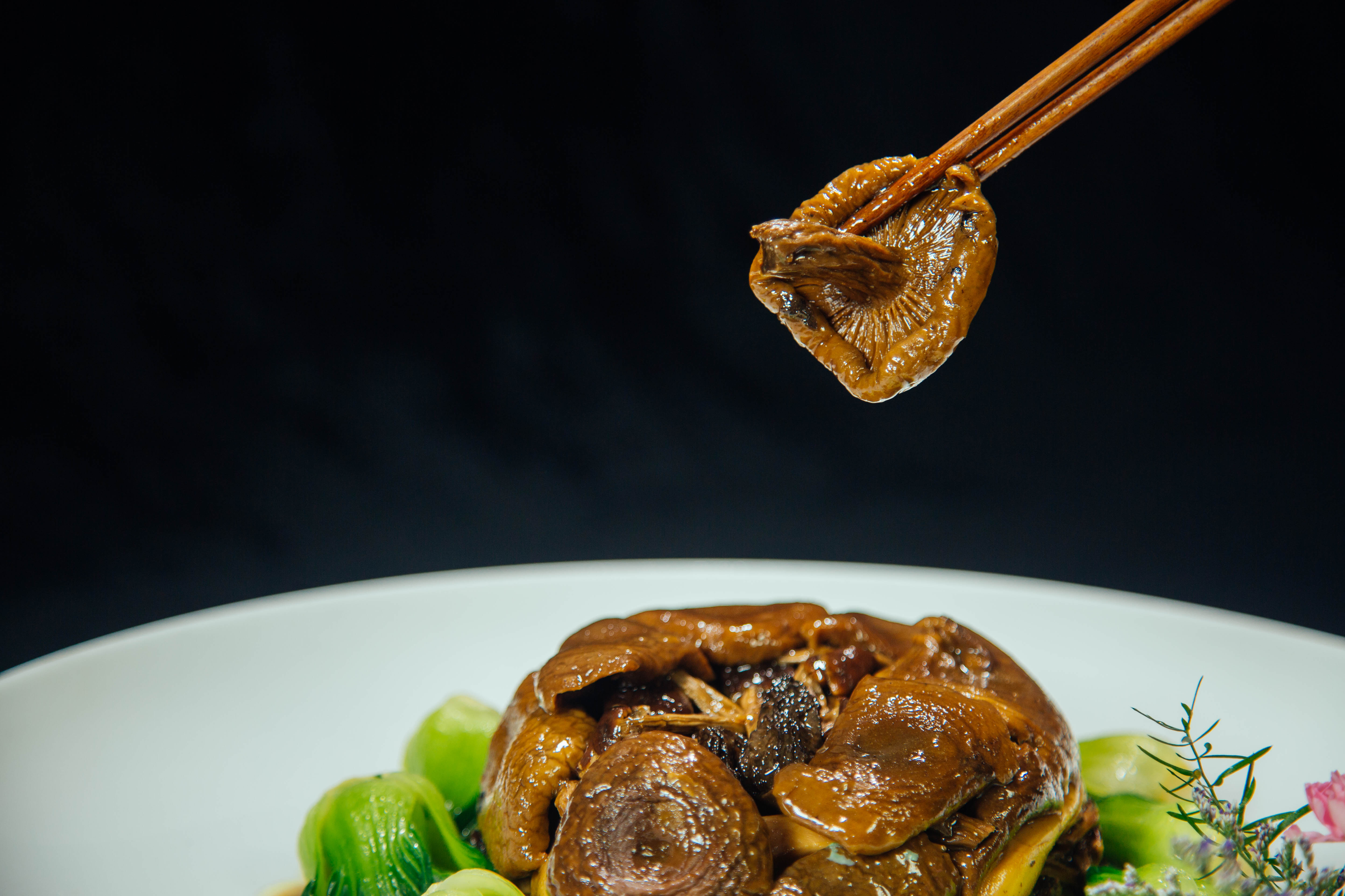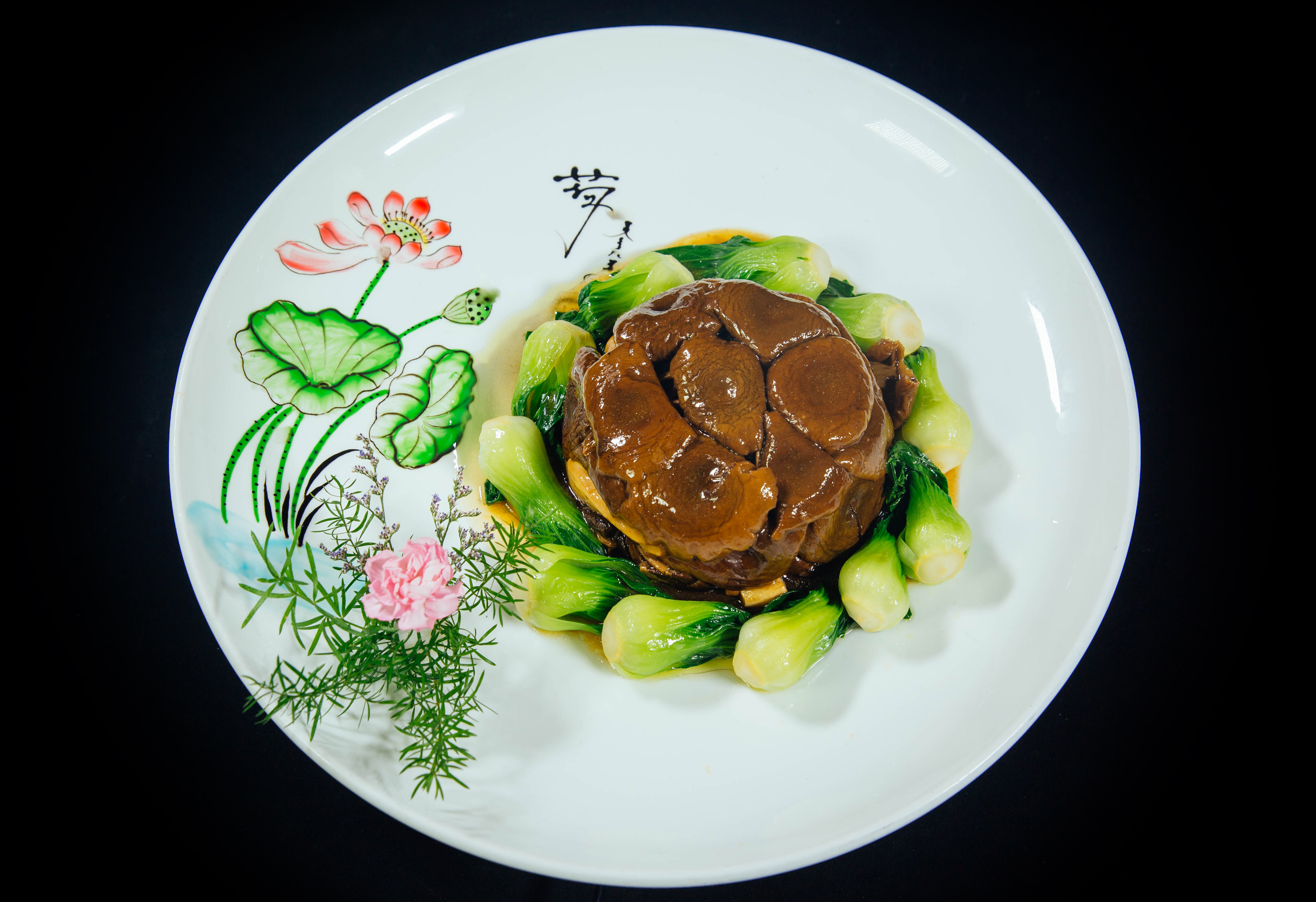 【菜肴食材】干野生梨菇100克、干松茸菇30克、干铁皮菇30克、干姬松茸30克、菜胆12颗、绿笋丁30克、五花肉30克、葱白10克、生粉5克、野山茶油30克、生抽15克、盐5克、料酒10克、鸡精5克、鸡汤200克。