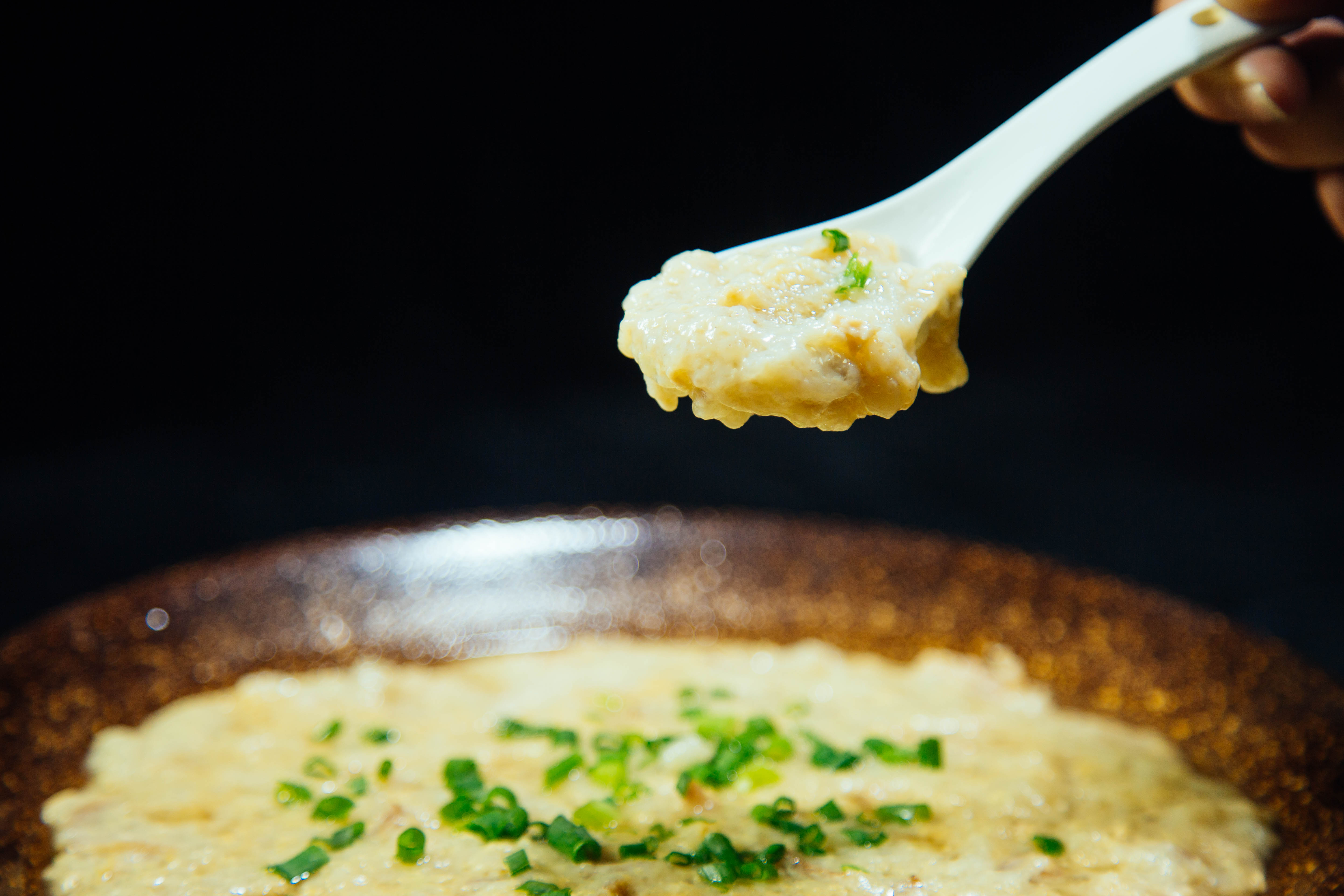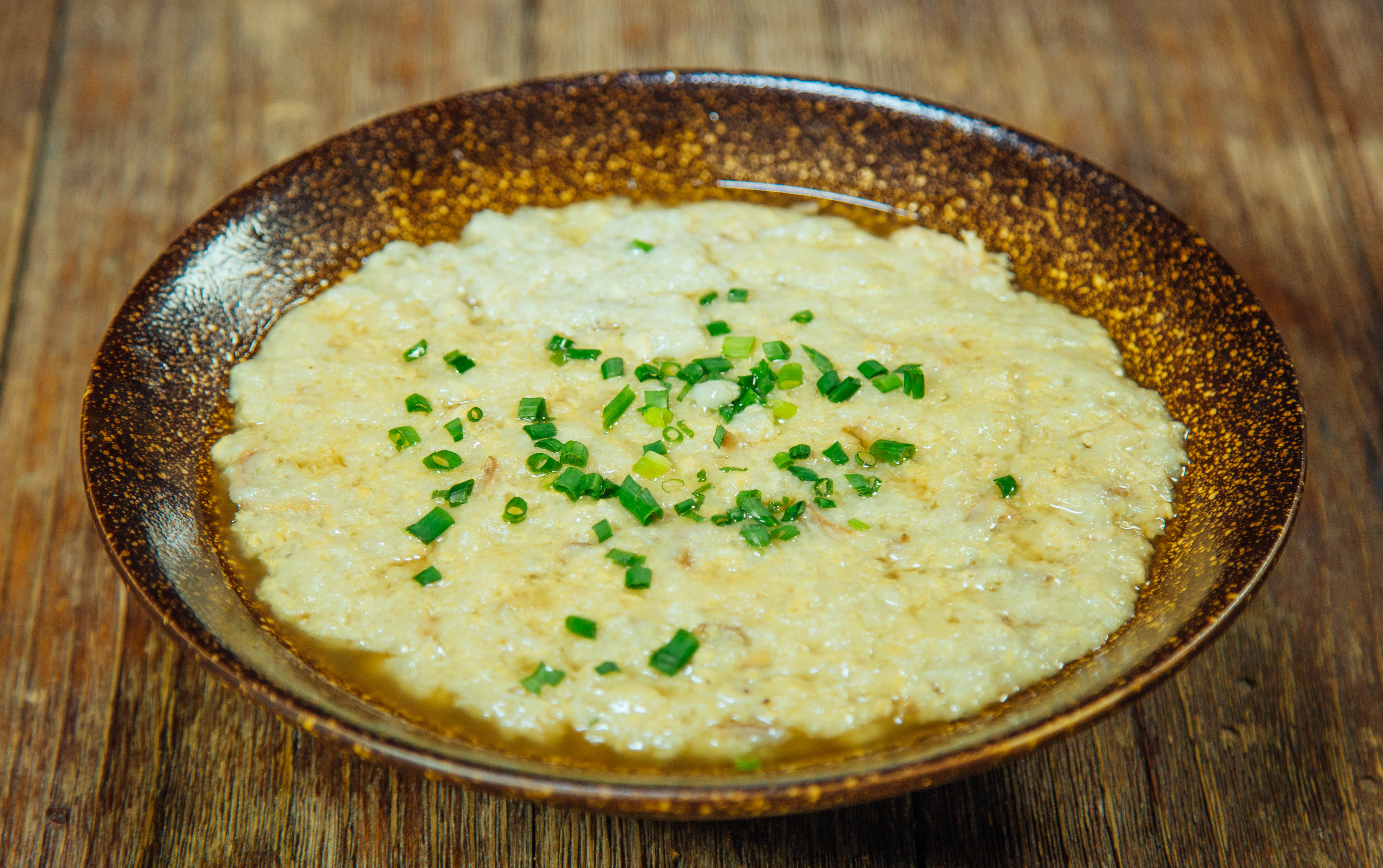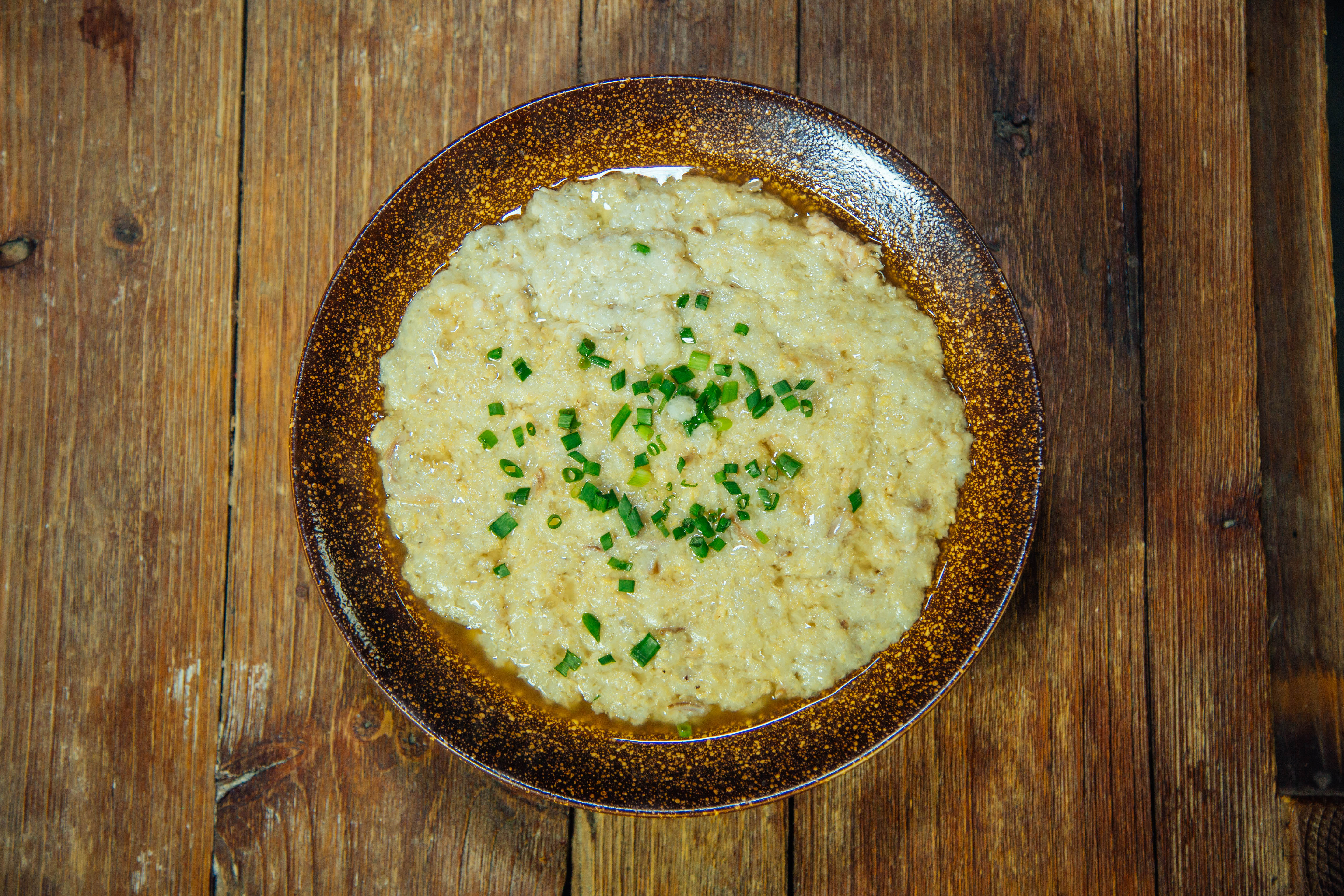 【制作方法】1.鸡脯肉去筋膜后剁成茸,鸡蛋去壳后入碗打散,然后两者混合均匀。葱洗净切葱花,猪肚治净后蒸熟再改刀成丝,地瓜粉加适量水调稀。