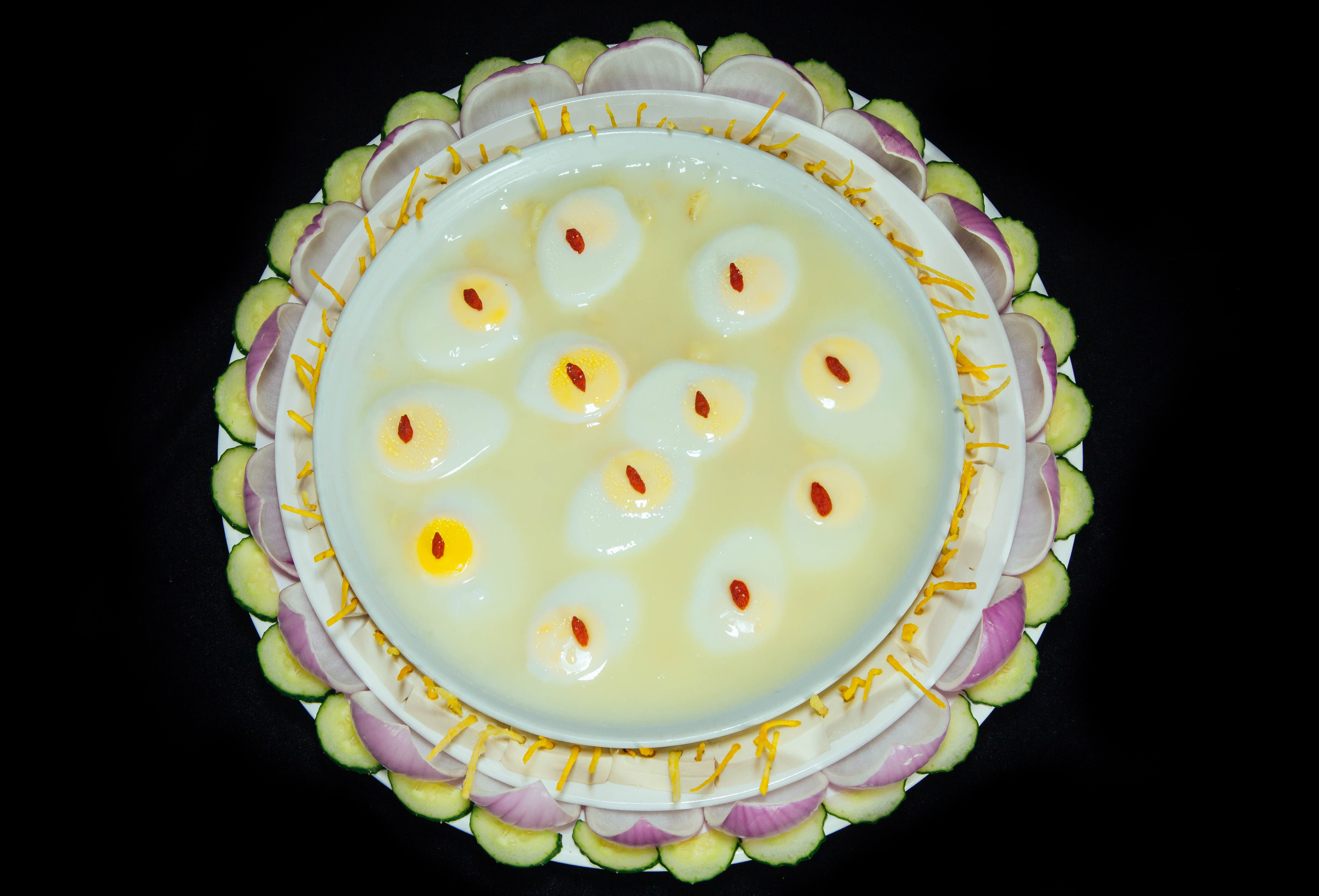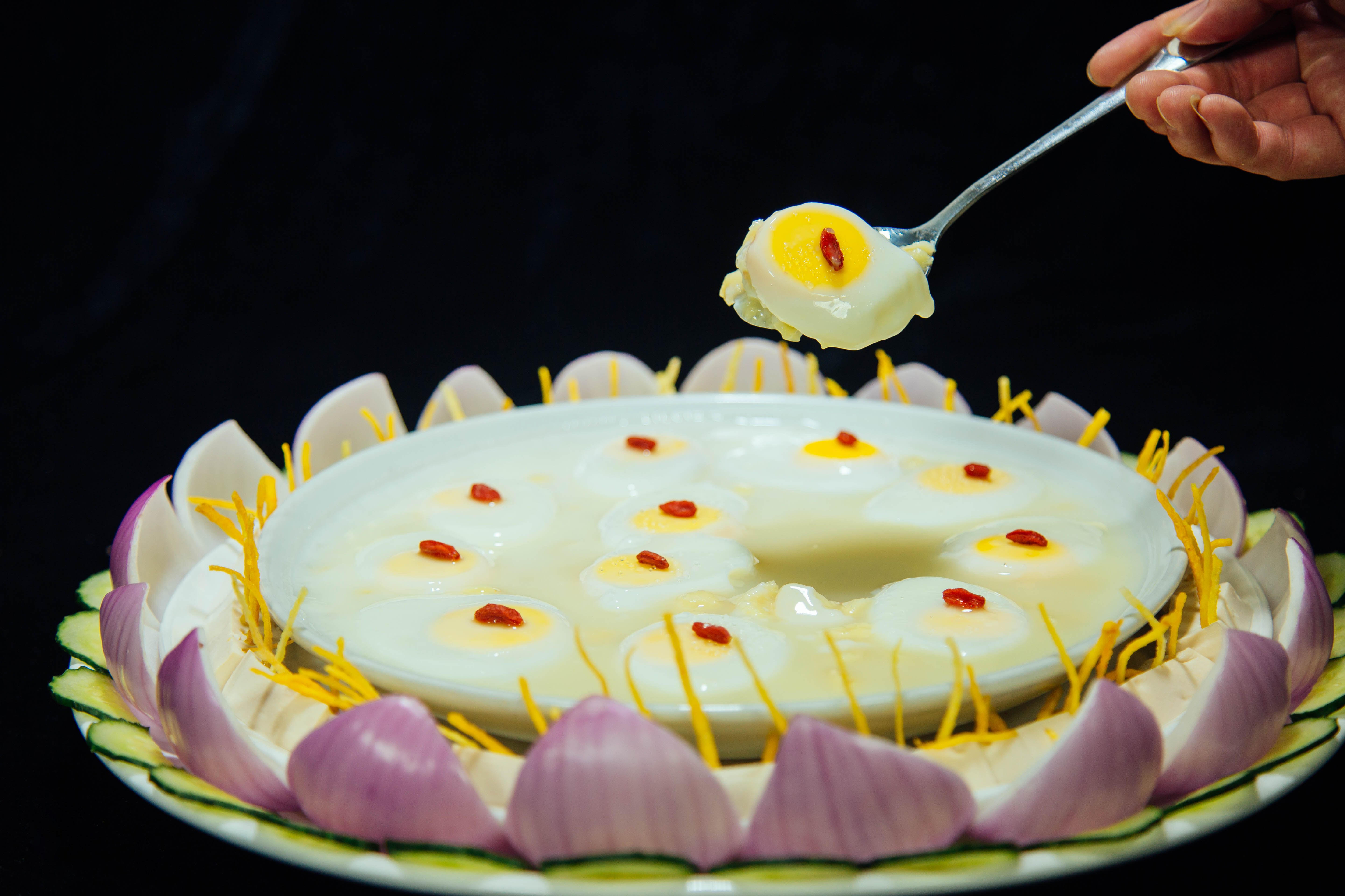 【菜肴食材】五夫白莲子200克、土鸡蛋12个、枸杞5克、冰糖100克。