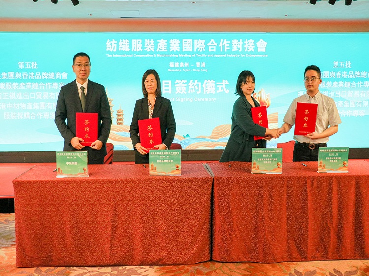 会上,闽港两地政企代表就纺织供应链合作、科技创新、产教融合等议题进行深入交流,并举行闽港产业合作项目现场签约仪式。