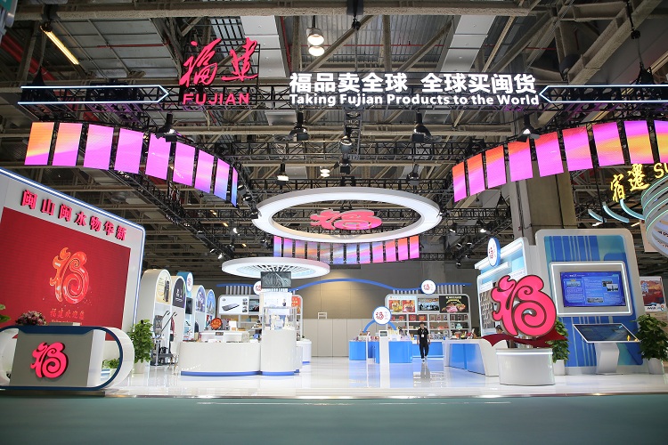 福建馆以“福品卖全球、全球买闽货”为主题,突出“福文化”,设置了“1+5”展区,分别为福建形象展示区和福味飘香、福享食尚、福茶生活、福见商旅、福潮国风等“五福”展区,福建福品类别中的消费品品牌企业带来了福品知名品牌、地标性产品、老字号品牌和福品“新秀”等百余款福品好物。此外,福建馆在展陈方式上进一步创新,通过智能算法、手势感应等前沿技术以及老字号美食现场制作、品鉴等,让福建馆更具科技性、互动性、参与性。