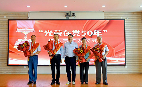 为熊浩安、贺汪洋、张秋、陈勇同志颁发“光荣在党50年”纪念章