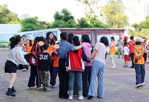 活动伊始,“桃花朵朵开”游戏迅速拉近了孩子们与“福爱爸妈”的距离。当主持人喊出“开三朵”,孩子们与志愿者立即手拉手抱成一团,未能成功组合的成员则通过自我介绍展示才艺,现场洋溢着轻松愉快的氛围。