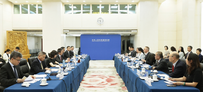7月14日,商务部国际贸易谈判代表兼副部长李成钢会见由中国美国商会会长何迈可率领的会员企业代表团。双方就中美经贸关系、美国企业在华发展等议题交换了意见。