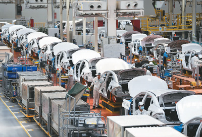 2月24日,在广州市番禺区的广汽埃安新能源汽车股份有限公司,工人在总装生产线上工作。新华社记者 邓 华摄 |