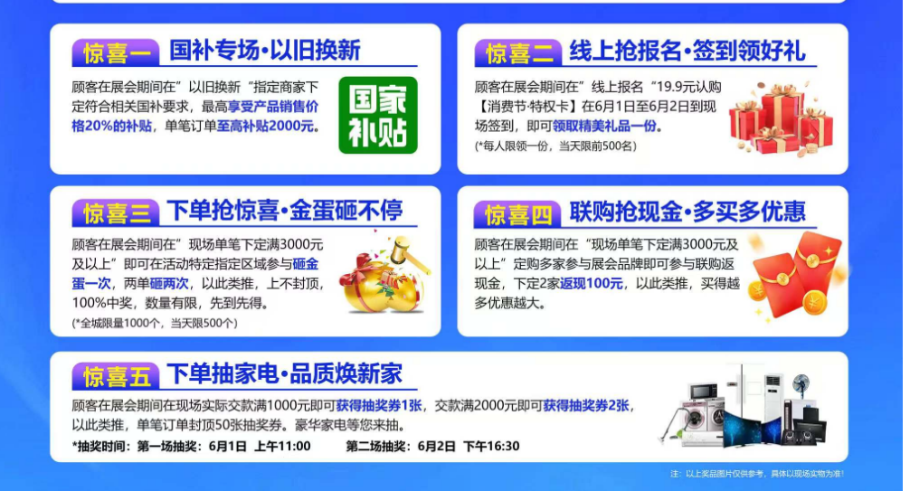 消费者除享受以旧换新补贴外,现场商家还提供签到领好礼、金蛋砸不停、联购抢现金、下单抽家电等多重叠加福利,进一步降低家居换新成本,让消费红利“零距离”触达每一位消费者。