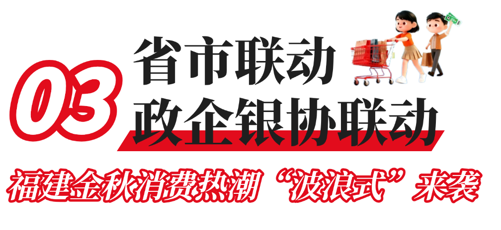 全省各地市围绕“悦购金秋消费季”主题,推出各具特色的促消费活动,形成“一市一品牌、全域共繁荣”的生动局面。“莆超燃购”“惠聚榕城”“国潮泉州”等品牌活动……让金秋消费热潮席卷八闽大地。银联、各大商业银行的金融促消费活动,也将轮番登场,共同点燃金秋消费激情。