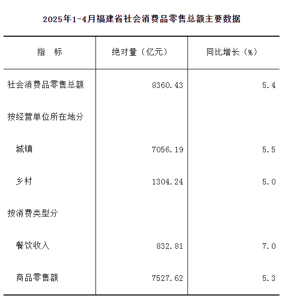 1-4月,全省社会消费品零售总额8360.43亿元,比上年同期增长5.4%(名义增长,下同)。
