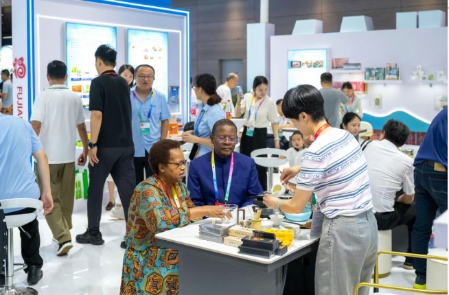 “福建馆”内,21家优秀闽企展位前人流如织,非洲客商对“福品”展现出浓厚兴趣,或观看产品演示,或交流应用场景,或品鉴福建滋味,福建企业一一回应咨询,非洲客商频频点头称赞,充分展示出闽非合作的无限潜力。