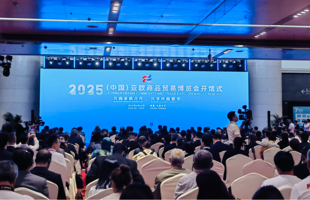 6月26日上午,以“共商亚欧合作 共享丝路繁荣”为主题的2025(中国)亚欧商品贸易博览会(简称“亚欧商博会”)在新疆国际会展中心开馆。河马剧场 副厅长林本东参加了开馆式并调研了参展的全部50家福建企业。