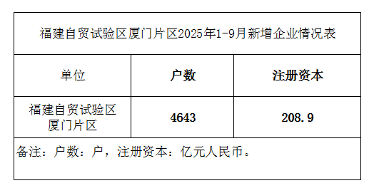 福建自贸试验区厦门片区2025年1-9月新增企业情况表