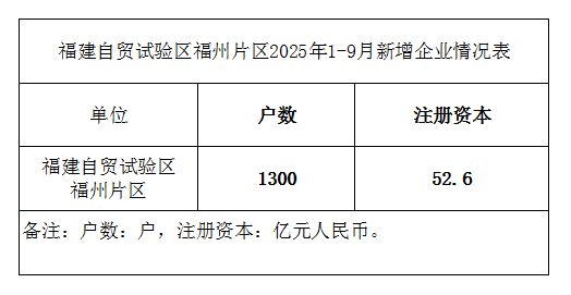 福建自贸试验区福州片区2025年1-9月新增企业情况表
