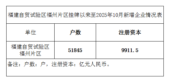 福州自贸试验区福州片区挂牌以来至2025年10月新增企业情况表