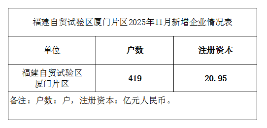 福建自贸试验区厦门片区2025年11月新增企业情况表