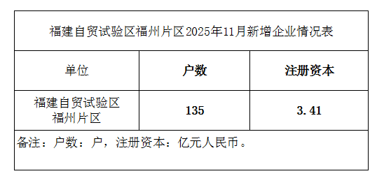 福建自贸试验区福州片区2025年11月新增企业情况表
