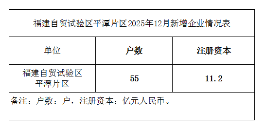 福建自贸试验区平潭片区2025年12月新增企业情况表