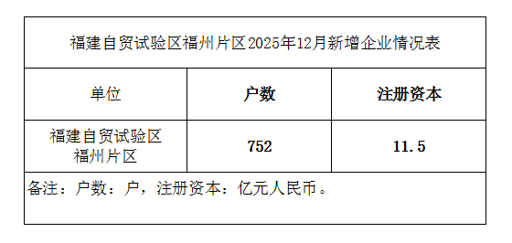 福建自贸试验区福州片区2025年12月新增企业情况表