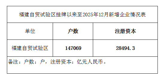 福建自贸试验区挂牌以来至2025年12月新增企业情况表