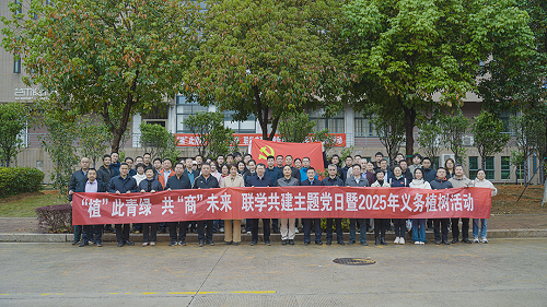 党组书记、厅长黄河明,商务部驻福州特办副特派员陈霖,福建商学院党委书记吴访益和党委副书记、校长程灵带领党员干部冒雨挥锹、铲土、踏实,开展“‘植’此青绿 共‘商’未来”联学共建主题党日暨2025年义务植树活动。