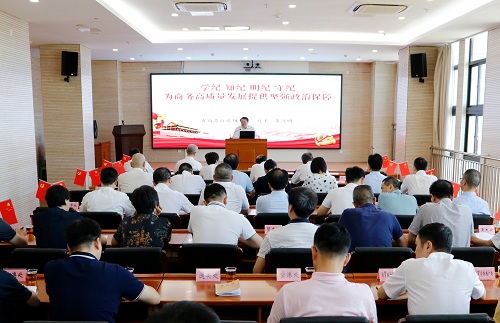黄河明书记以《学纪知纪明纪守纪 为商务高质量发展提供坚强政治保障》为题上纪律专题党课,并作集体廉政谈话。他着重对习近平总书记关于全面加强党的纪律建设的重要论述和《中国共产党纪律处分条例》谈学习理解和认识体会,深入剖析违纪违法典型案例,对商务干部增强政治定力、纪律定力、道德定力、抵腐定力提出明确要求。
