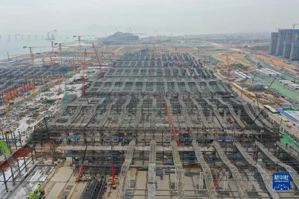 1月5日拍摄的厦门新会展中心展览中心项目建设现场(无人机照片)。新华社记者 林善传 摄