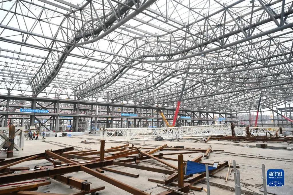 1月5日拍摄的厦门新会展中心展览中心1标段5号展馆建设现场。新华社记者 林善传 摄