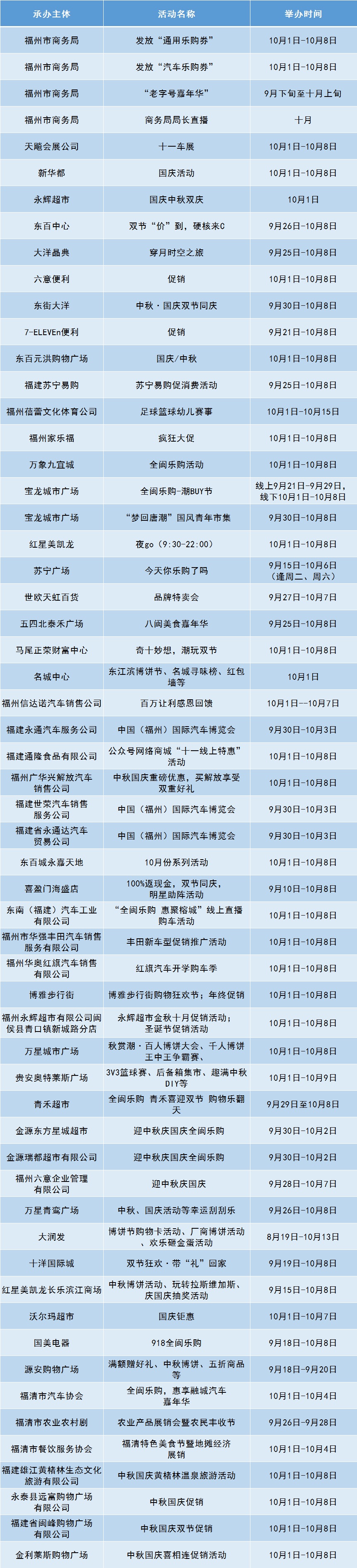 国庆、中秋双节将至,福州市都有哪些精彩活动呢?快随小商君先睹为快吧!