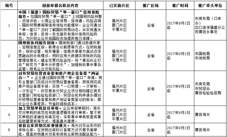 莆田市人民政府关于推广福建自贸试验区第五批可复制创新成果的通知
