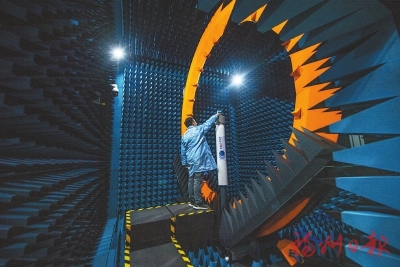 技术人员在物联网开放实验室无线通信终端天线性能实验室内进行实验。本报记者 林双伟摄